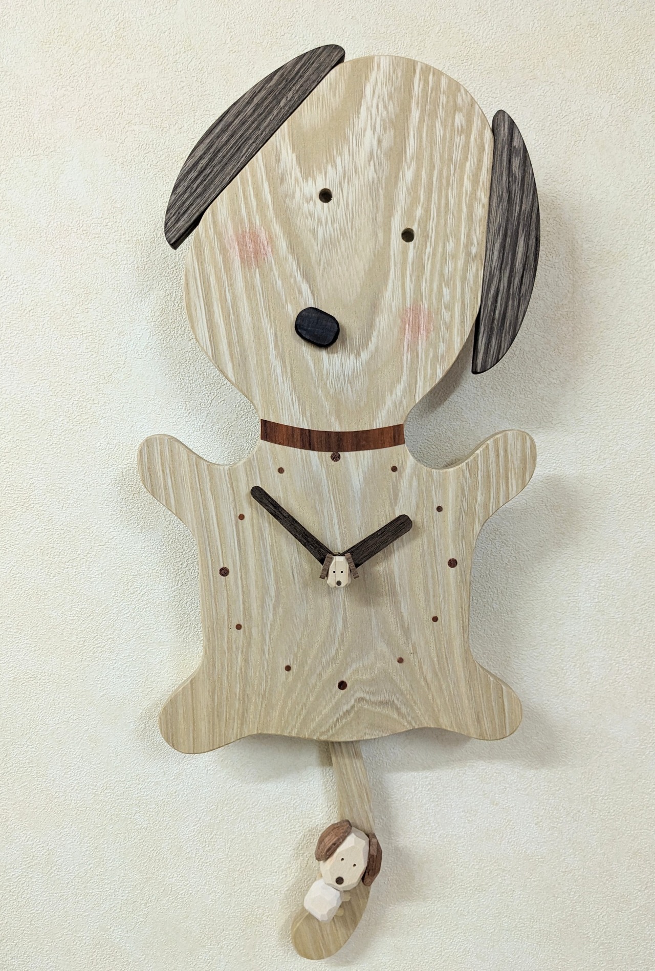 ワンちゃんのしっぽがユラユラ揺れる可愛い振り子時計。